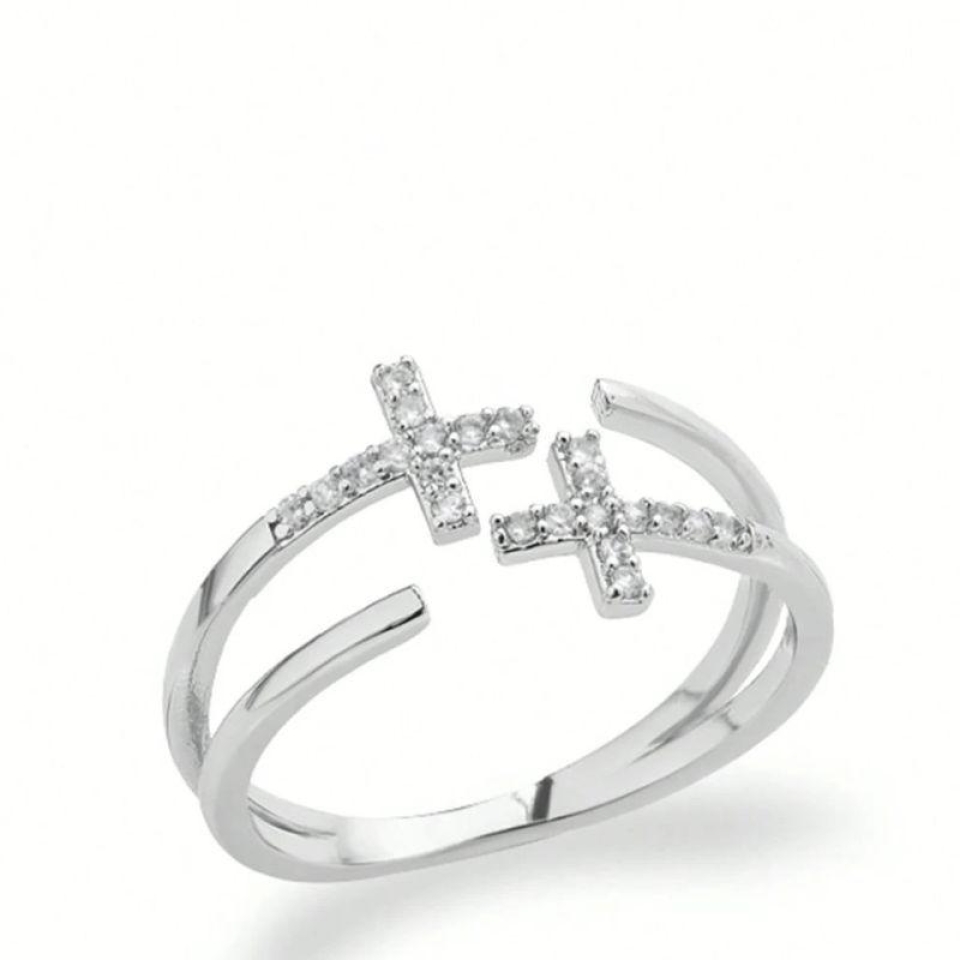 Anel Cruz Cravejada Ajustável - Aço Inox