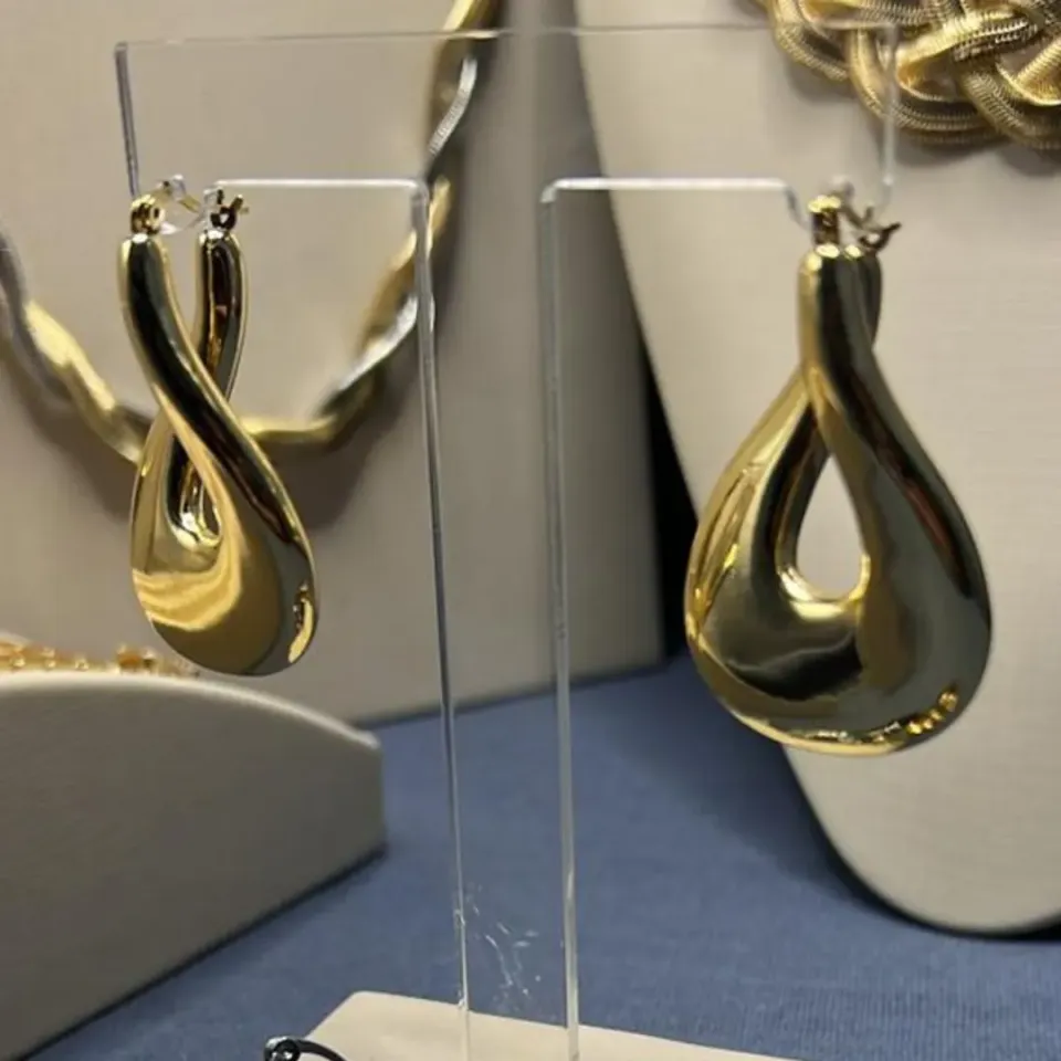Brinco de argola torta ,fecho italiano, banhada a ouro 18 com 50mm de altura x 32mm de largura total.