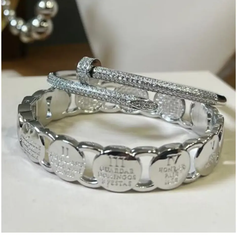 Bracelete 10 mandamentos abertura lateral, com 10 mm de espessura.