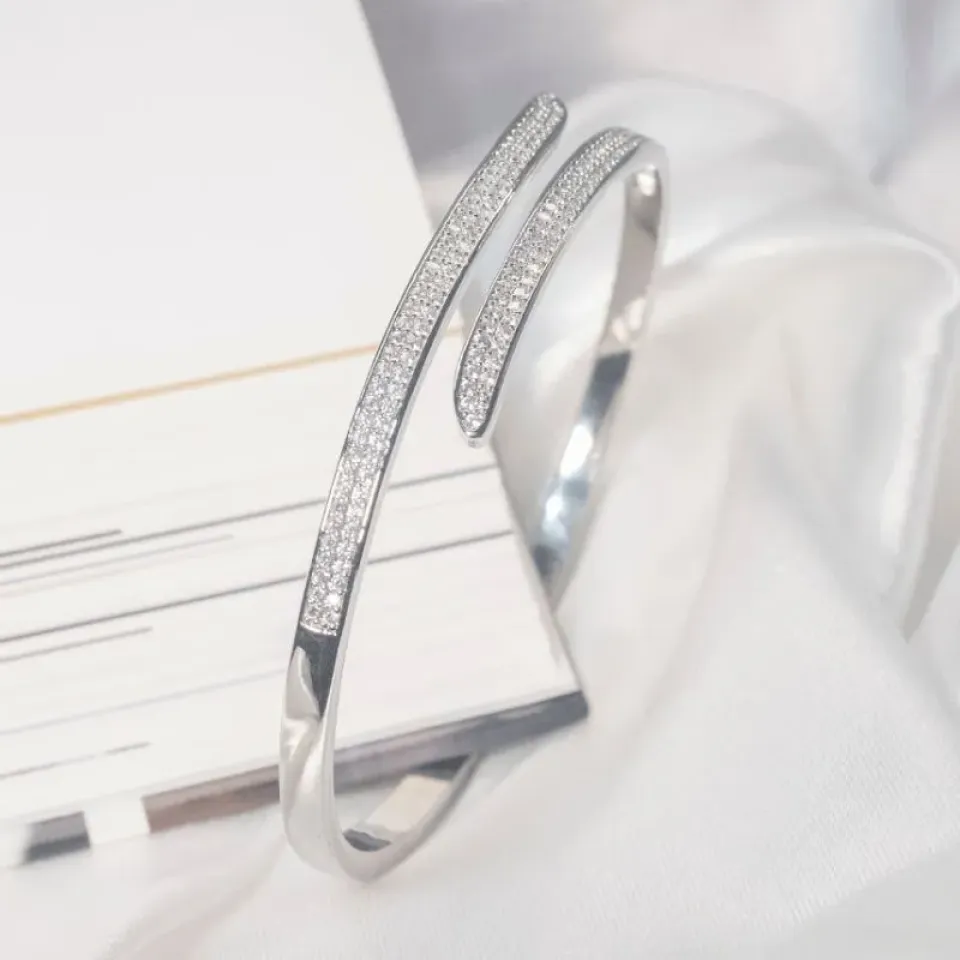 Este bracelete banhado a ouro, com design moderno em linhas delicadamente entrelaçadas e cravejado de zircônias brilhantes, é a escolha perfeita para quem deseja unir elegância e versatilidade. Uma peça que ilumina o visual e pode ser usada sozinha para um destaque refinado ou combinada com outros acessórios para um mix cheio de estilo.