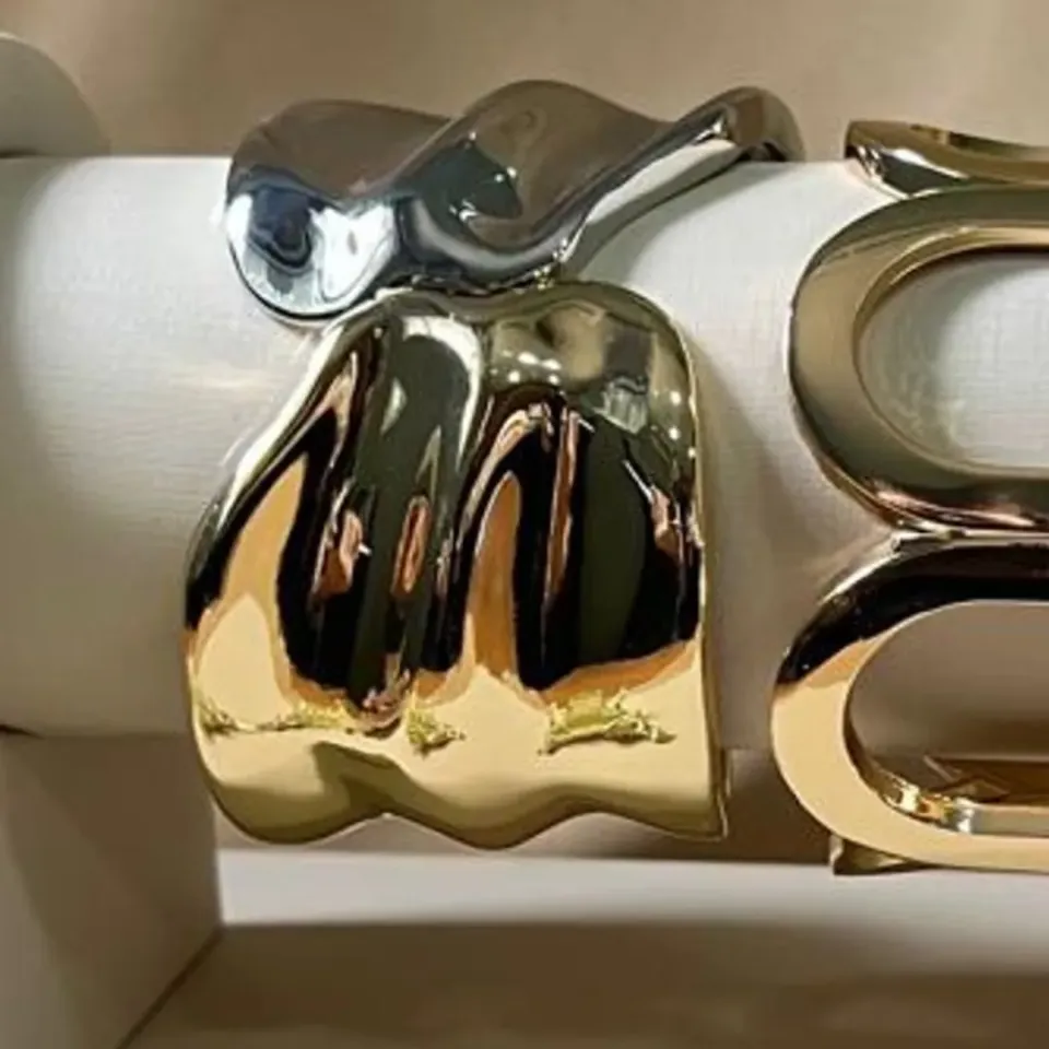Bracelete dois banhos pontas abertura no meio com 40mm de espessura.