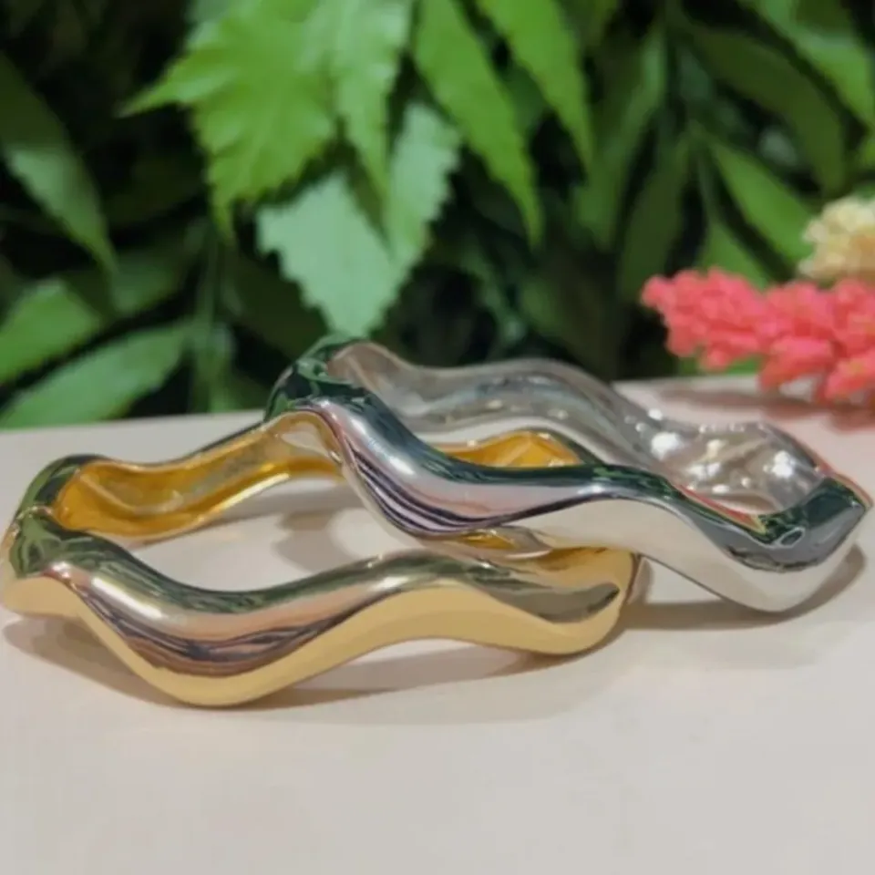 Bracelete ondulado, abertura na lateral com 7mm de espessura.