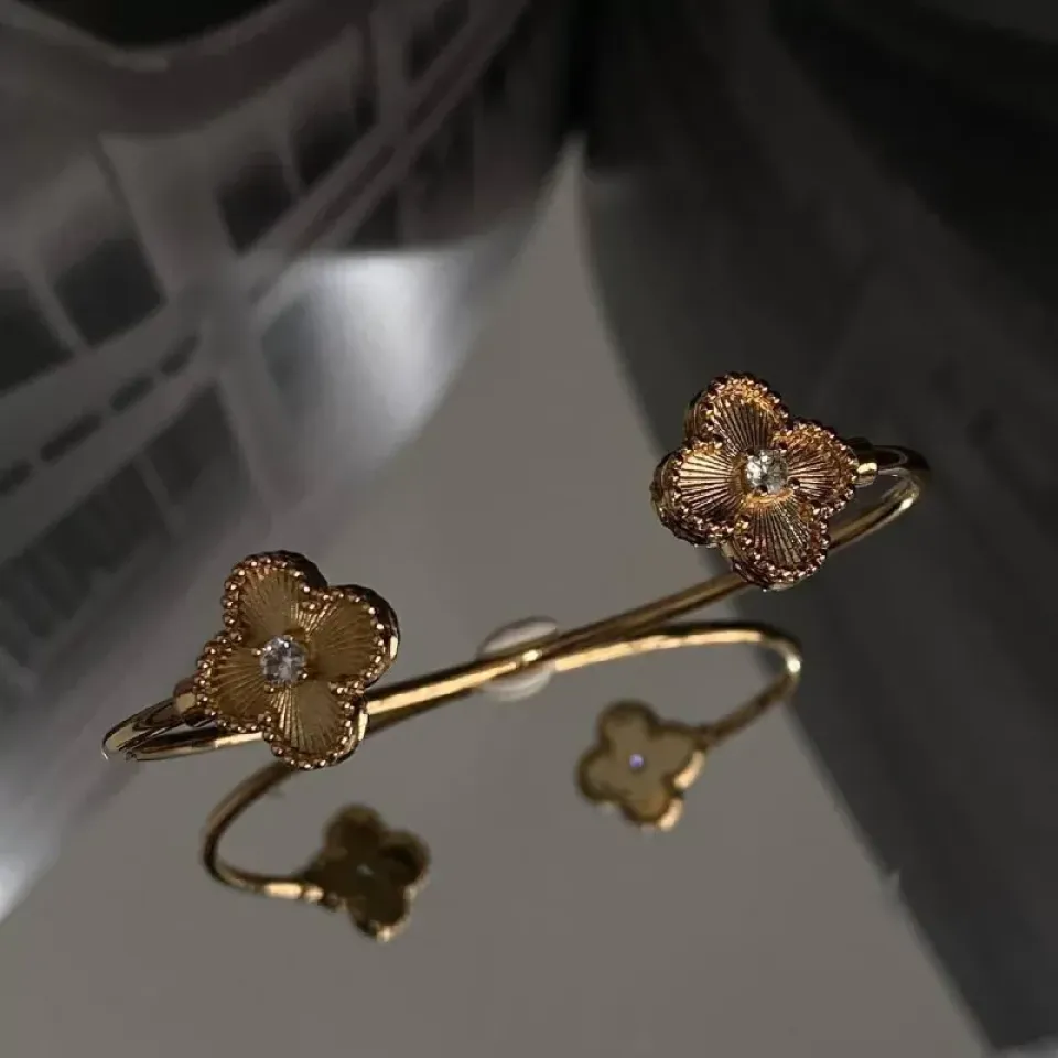 Bracelete banhado a ouro duas pontas Trevo com zirconia.