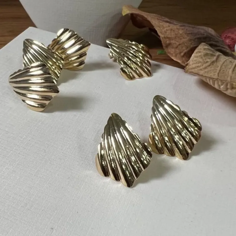 Para eventos diurnos ou casuais, os brincos médios podem ser mais simples, com estruturas de metal, vidro, resina ou materiais lisos.
