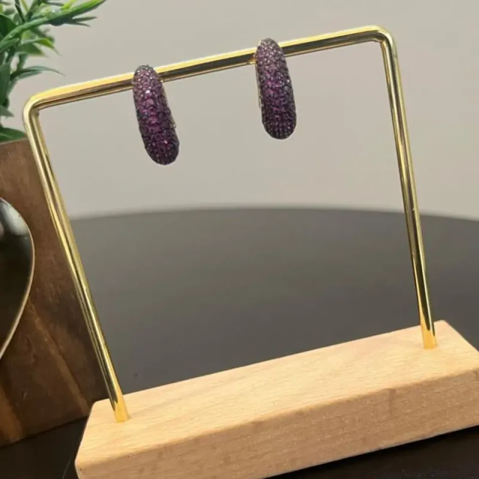 Essas argolas médias são cravejadas com micro zircônias Vermelho Rubi trazendo sofisticação e um ar contemporâneo ao acessório. Com acabamento dourado e fecho seguro, são ideais para complementar looks noturnos ou elevar produções do dia a dia com elegância.