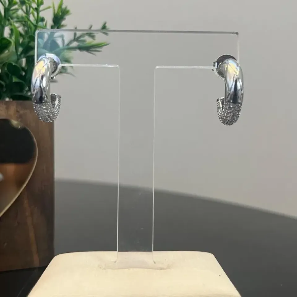 Detalhes luxuosos: A base traz um em banho de Ródio efeito torcido elegante, enquanto a parte inferior é cravejada com micro zircônias, adicionando brilho e refinamento. Com fechamento em Tarraxa.