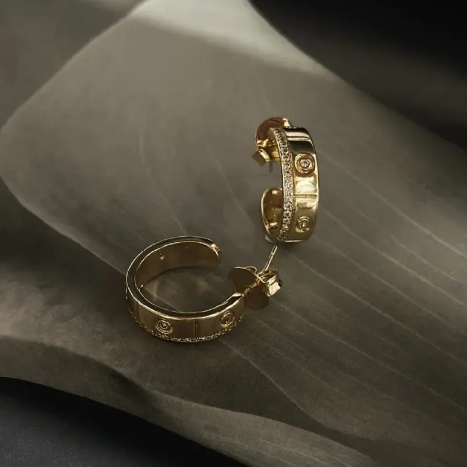 Brinco de argola banhado a ouro inspiração com fil de zircônias.