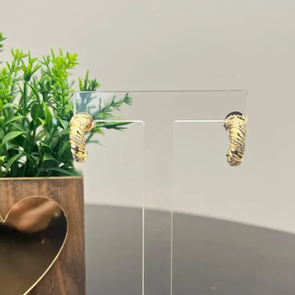 Elegância e sofisticação em cada detalhe. Este brinco em formato de argola apresenta um design espiralado com acabamento dourado, que combina perfeitamente com looks clássicos ou modernos. Ideal para quem busca uma peça marcante, mas versátil, para o dia a dia ou ocasiões especiais.