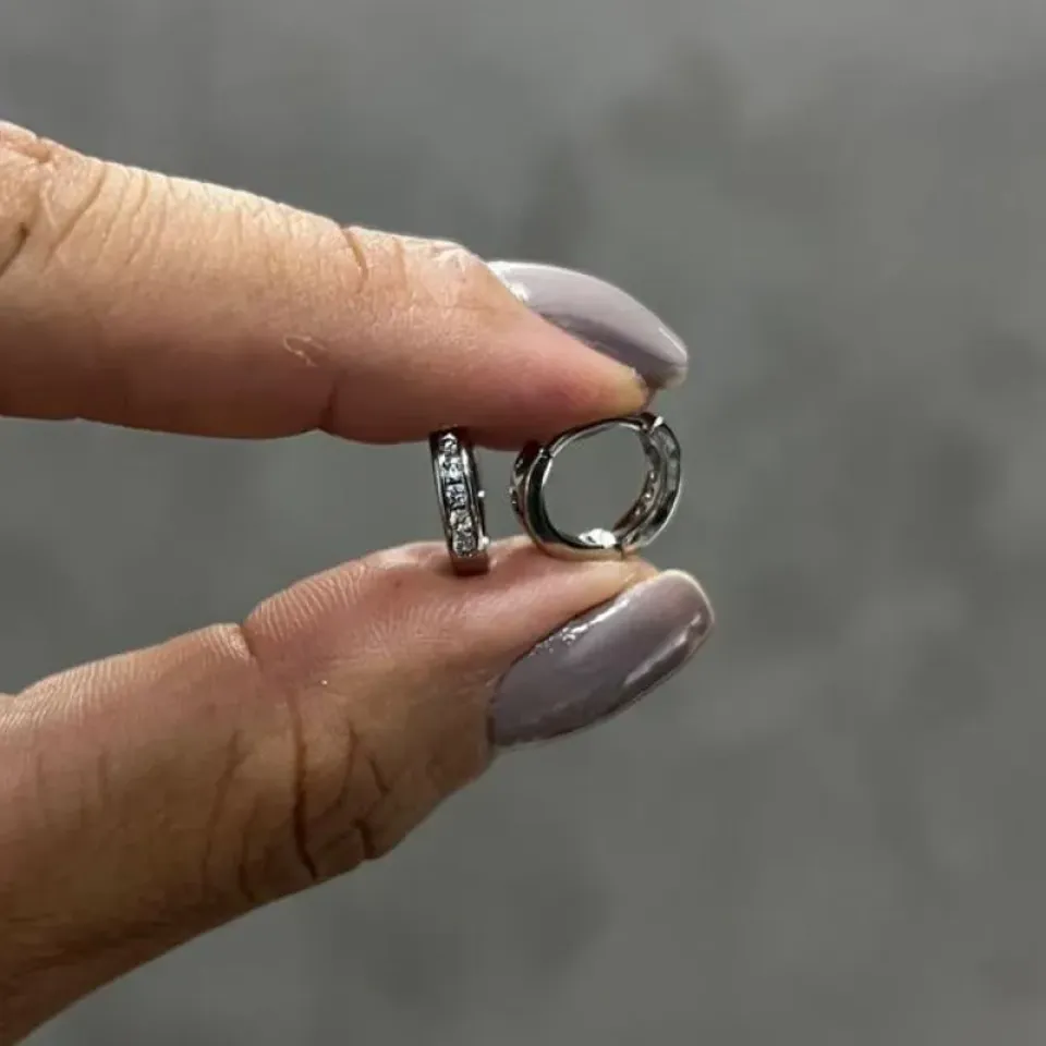 Brinco banhado a Ródio Branco de Clik Cravejado com 10mm (pode ser usado como piercing de Cartilagem).