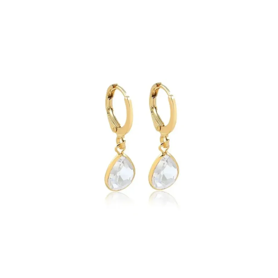 Brinco banhado a ouro, de clik com pingente de zircônia de Gota com 5mm.
