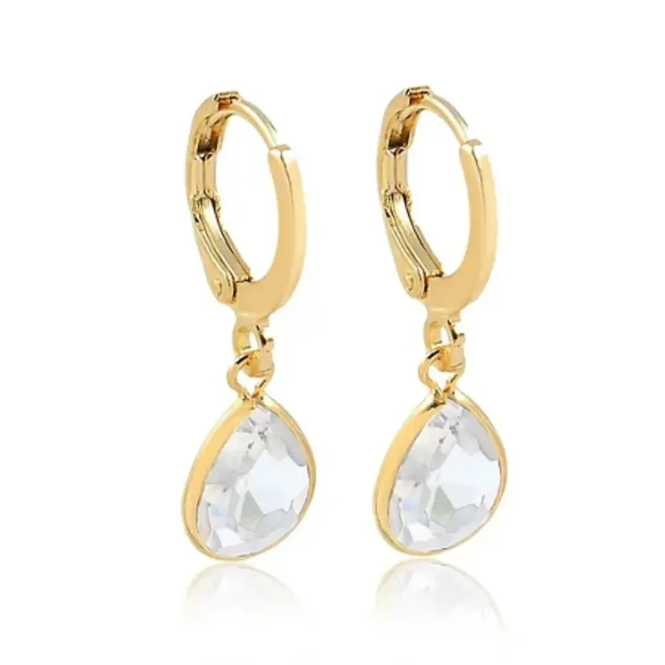 Brinco banhado a ouro, de clik com pingente de zircônia de Gota com 8mm.