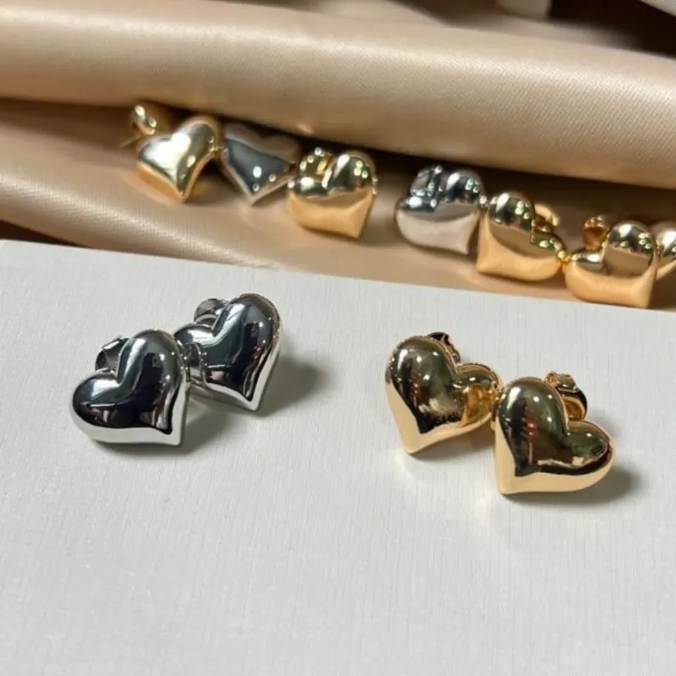 Brinco banhado a ouro 18, formato de coração com 15xx de altura x 15mm de largura, fechamento em tarraxa.