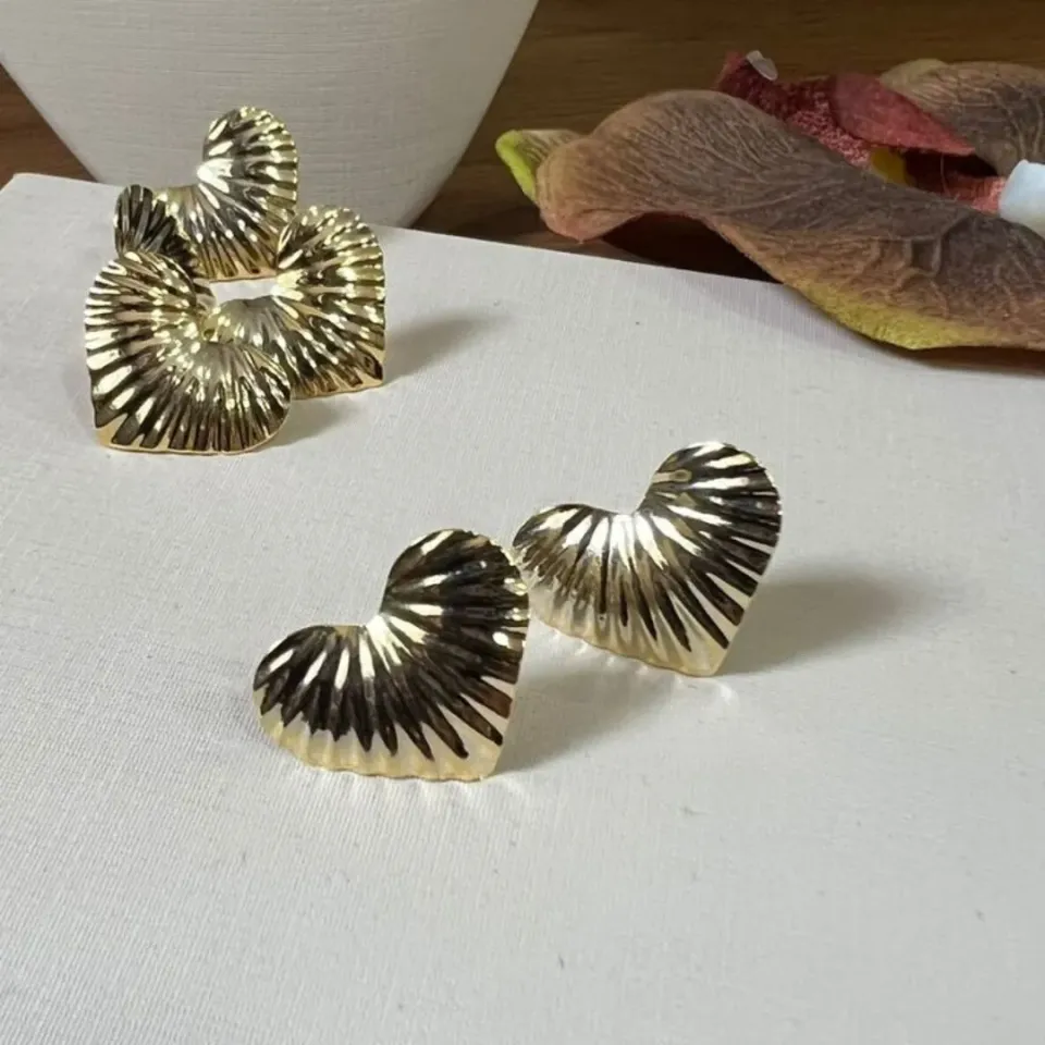 Brinco banhado a ouro18 em formato de coração trabalhado com 15mm de altura 20mm de largura, com fechamento em tarraxa.