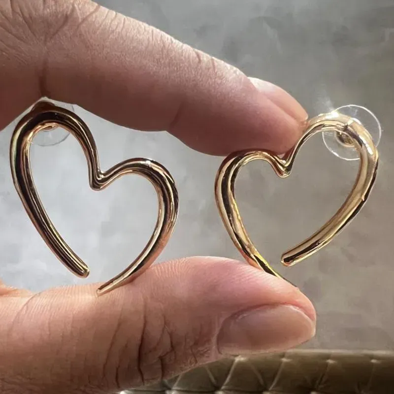 Brinco de coração Vazado banhado a ouro, com tarraxa, tamanho total do brinco com 35mm.