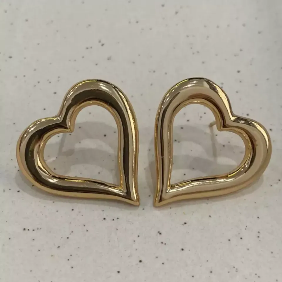 Brinco, banhado a ouro em formado de coração vazado com 25mm x 25mm, tarraxa.