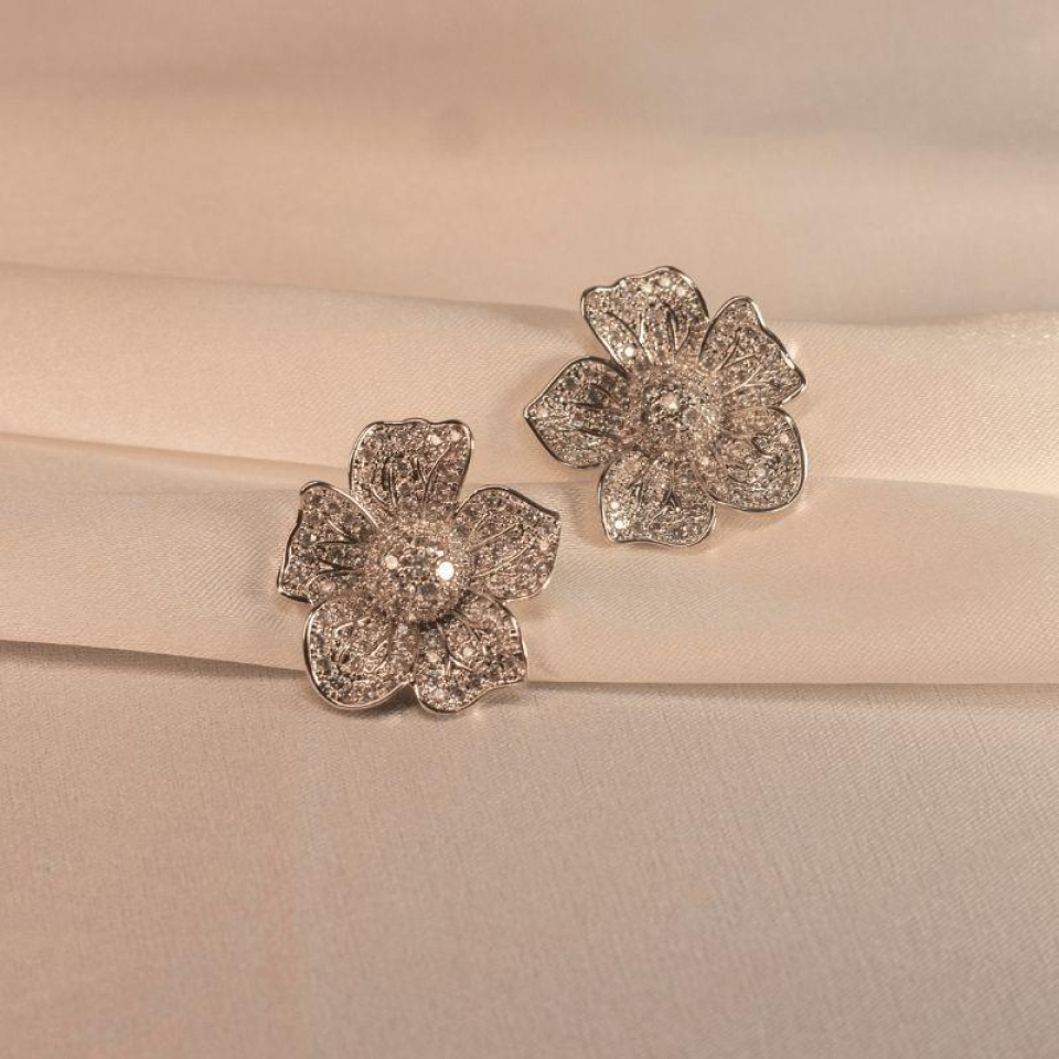 Um design delicado e sofisticado que traz o brilho das flores para o seu visual. Esse brinco combina elegância e romantismo, com pedras cravejadas que refletem a luz de forma única.