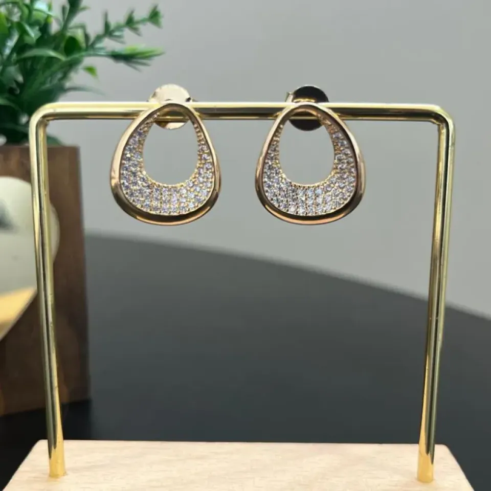 Com design em formato de gota vazada e acabamento cravejado com micro zircônias, esse brinco é a definição de sofisticação discreta. Um acessório versátil que vai do dia a dia ao look noite com perfeição.