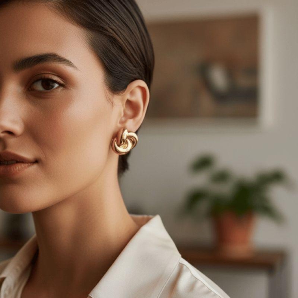 “Brinco nó banhado a ouro, com 27mm — uma peça cheia de charme e presença. Seu design em formato de nó traz um toque moderno e elegante, perfeito para quem ama acessórios marcantes. Acabamento polido, brilho intenso e tarraxa firme para garantir conforto e segurança no uso. Um brinco que transforma qualquer produção.”