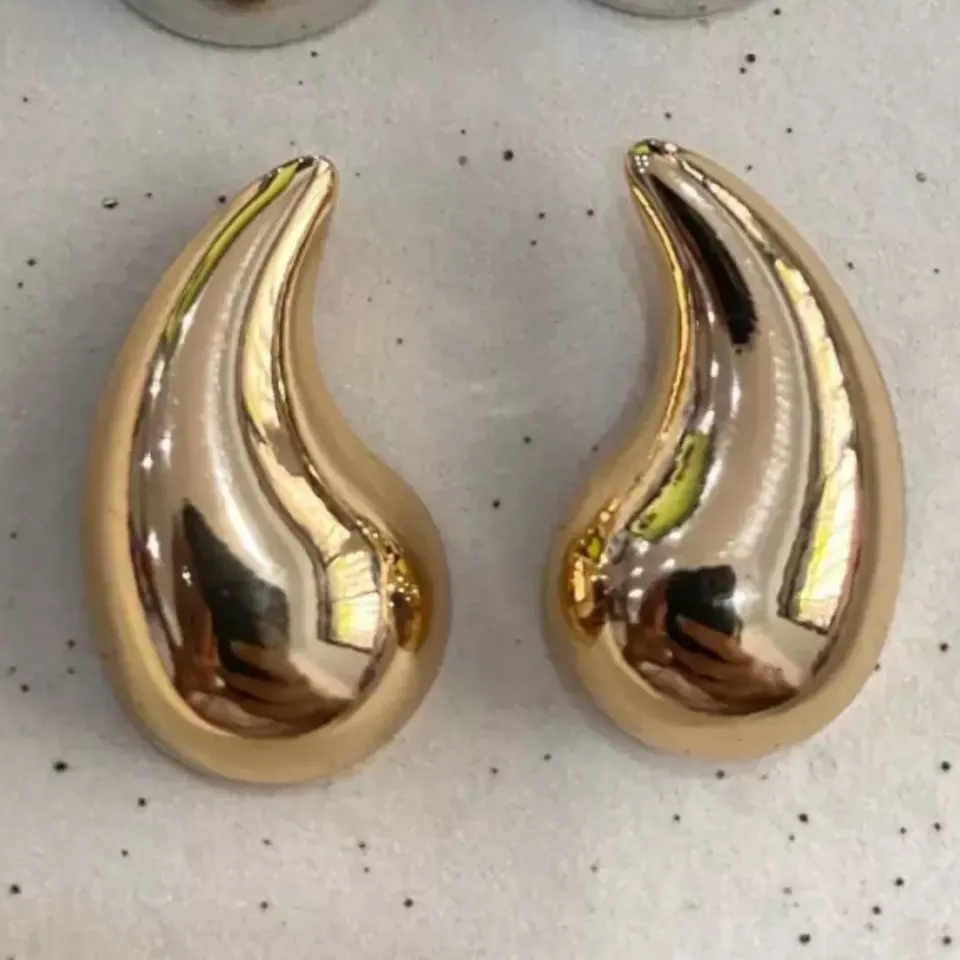 Brinco em Gota, banhado a ouro com 25mm de comprimento, oca parte de traz (gota metade) - tarraxa.