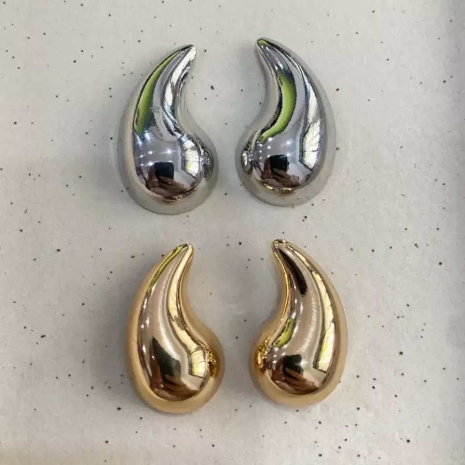Brinco em Gota, banhado a ouro com 28mm de comprimento, oca parte de traz (gota metade) - tarraxa.