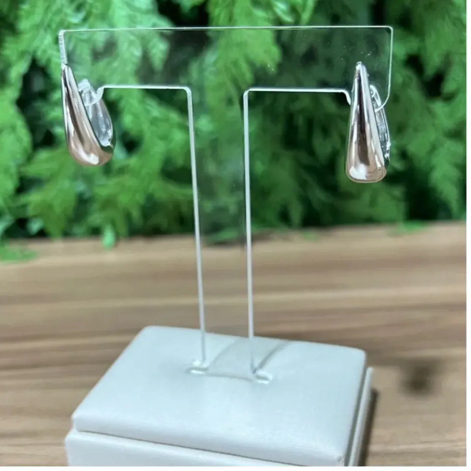 Brinco com fechamento em Clik, formato de gota lisa, com 2,5cm de altura x 0,5mm de largura.