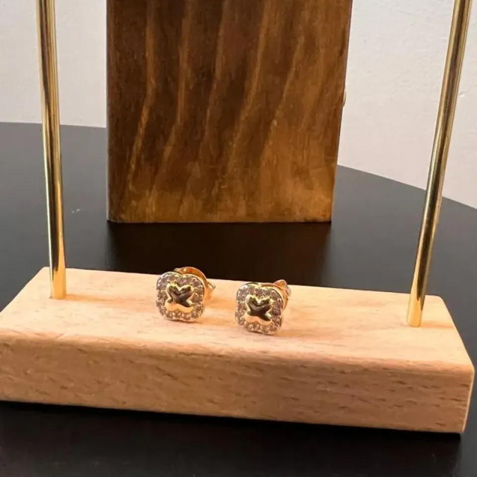 Brinco Inspiração Trevo Cravejado, banhado a ouro com 10mm tarraxa.