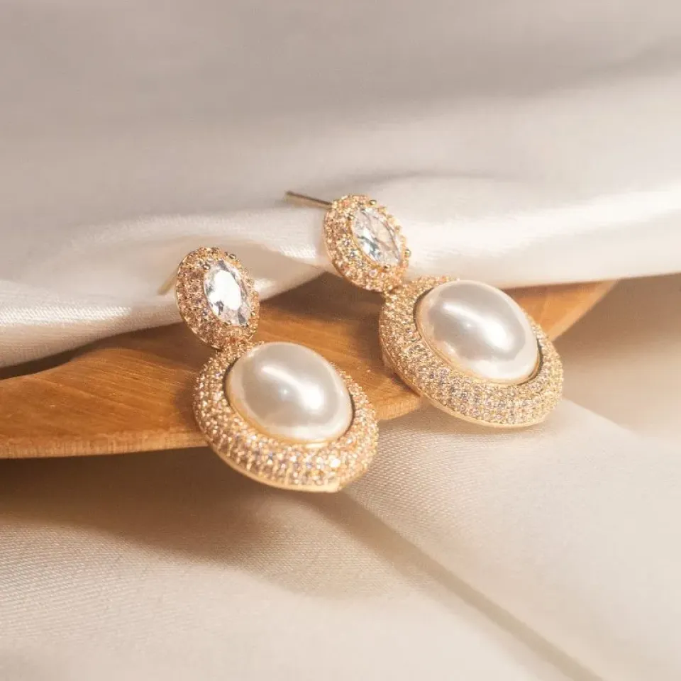 O detalhe superior com pedra em corte navete garante ainda mais brilho e elegância, tornando a peça perfeita para ocasiões especiais. Um acessório luxuoso que combina o clássico das pérolas com o glamour das zircônias, ideal para mulheres que buscam requinte em cada detalhe.
