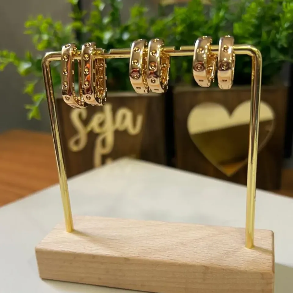 Brinco de argola Clik em trio inspiração Cartier nos tamanhos 20/15/12mm x 4mm.
