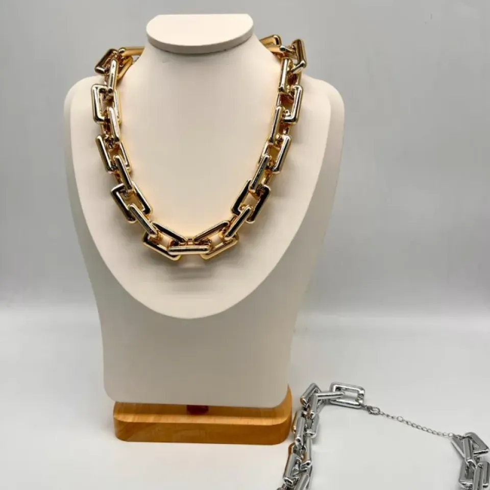 . Este estilo é perfeito para quem gosta de acessórios que chamam a atenção e adicionam um toque de confiança ao visual. Colares de elos grossos estão em alta na moda, especialmente quando combinados com o brilho do ouro.