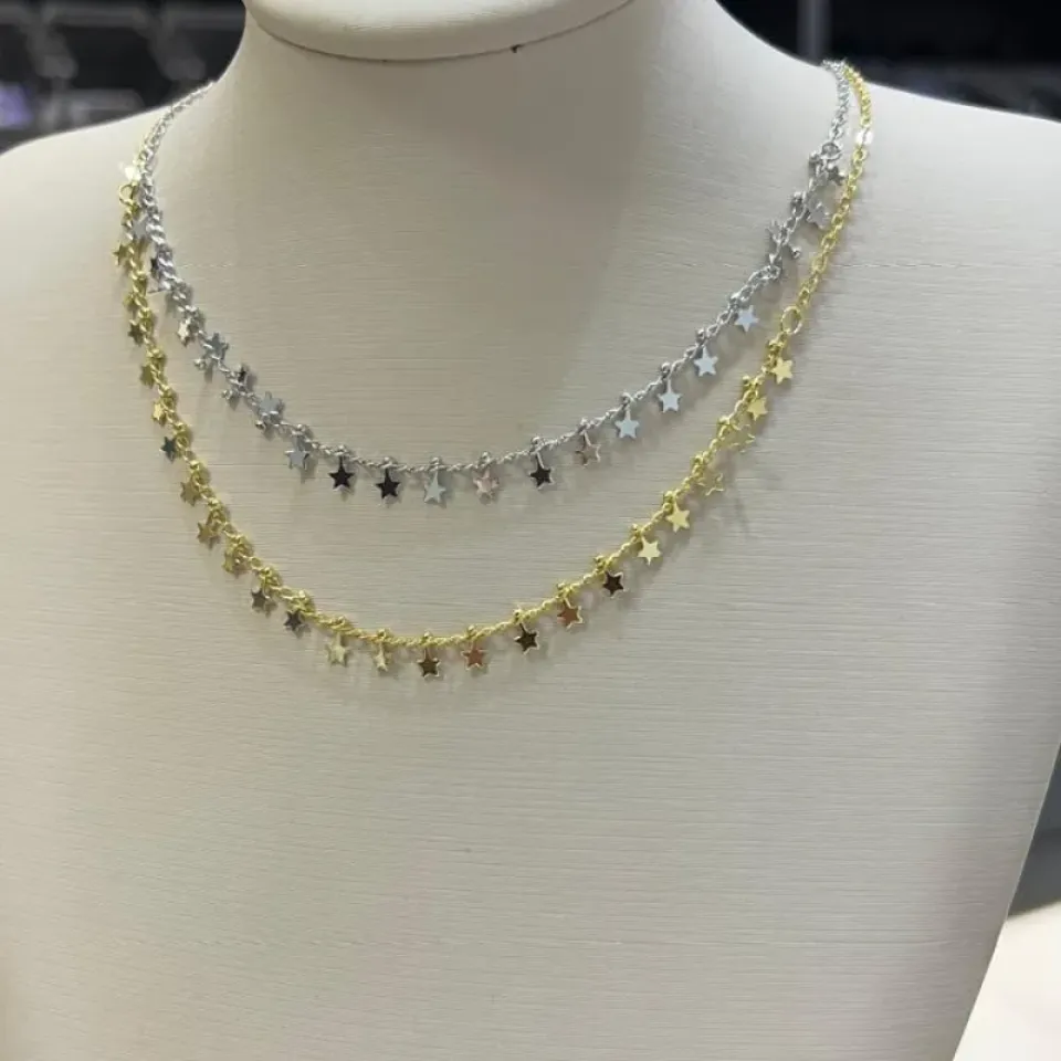 Choker estrelas - Banhado a Ouro com 40cm de comprimento + 8cm de extensor.