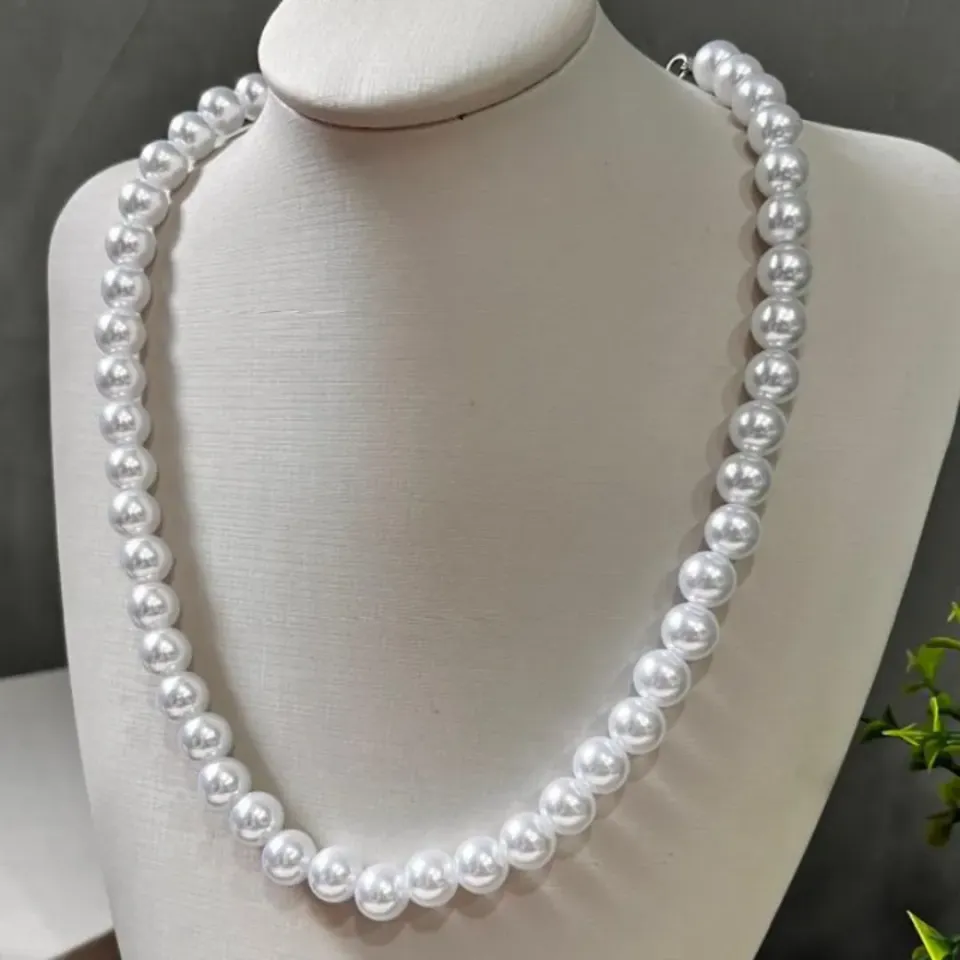 Colar de pérolas com 40cm de comprimento + 5cm de extensor com pérolas de 10mm de diâmetro.