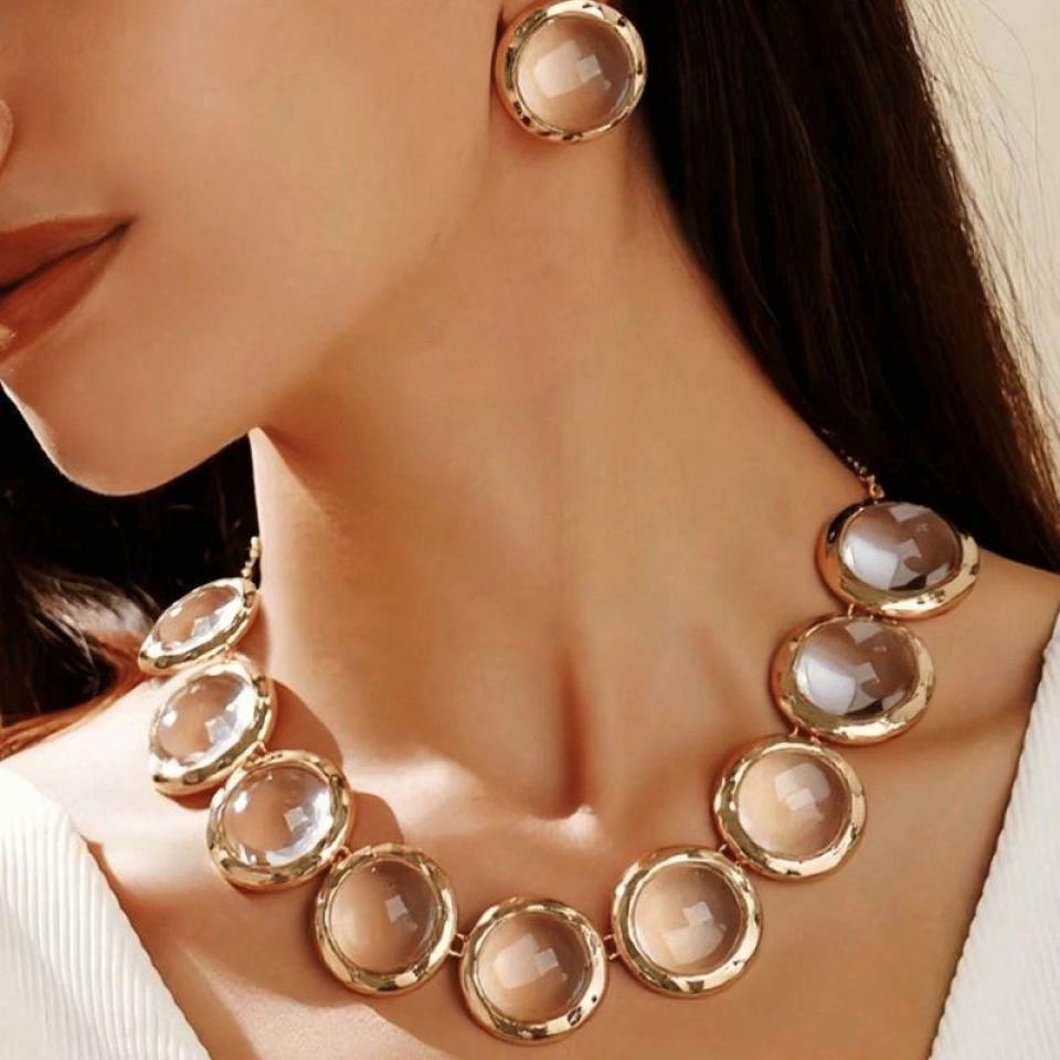 Conjunto sofisticado com pedras em destaque, perfeito para transformar qualquer produção com elegância e personalidade.