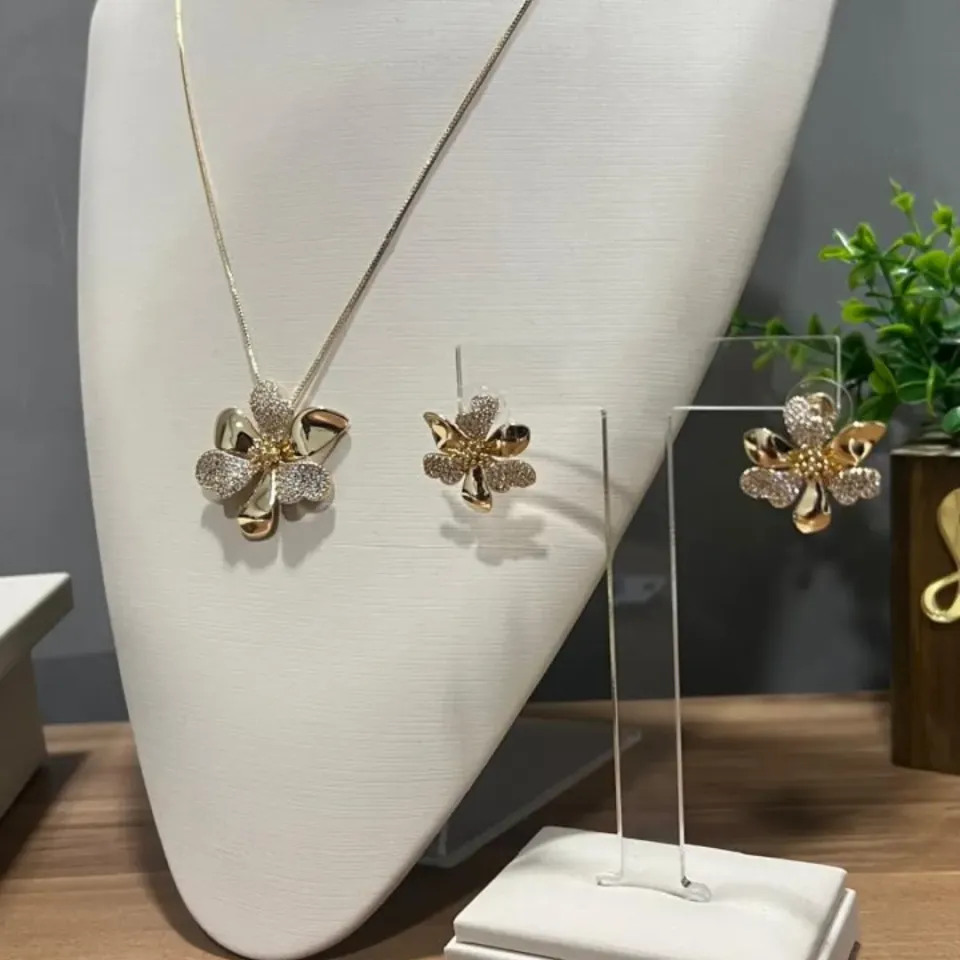 Conjunto Flor pétalas cravejadas