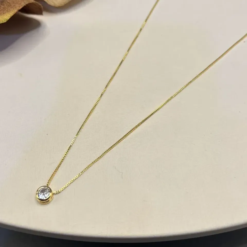 Corrente banhada a ouro com 40cm + 5 cm de comprimento e pingente de zirconia (ponto de luz) com 7mm