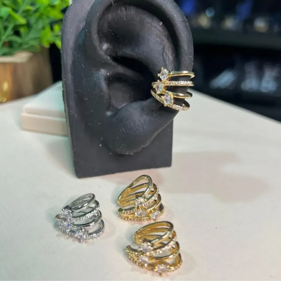 Piercing Fake fios cravejados em zircônia, com 3 pontos de luz, banhado a ouro. Peça vendida por unidade.