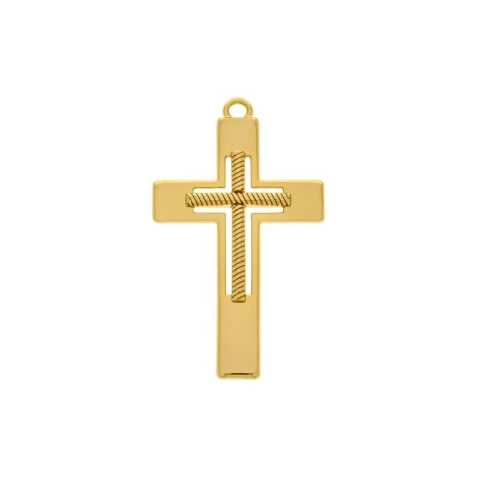 Pingente de Cruz vazada Trabalhada banhada a ouro com 45mm.