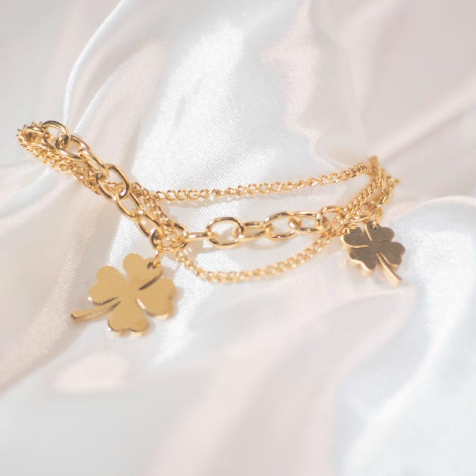 Pulseira Berloque Trevo - Aço Inox com Banho
