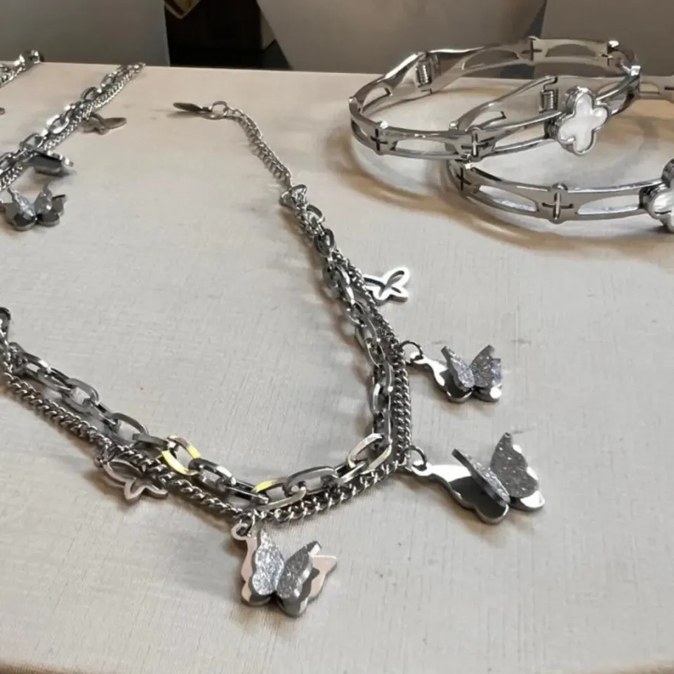 Pulseira em aço inox , dupla com pingentes de borboleta fosca.