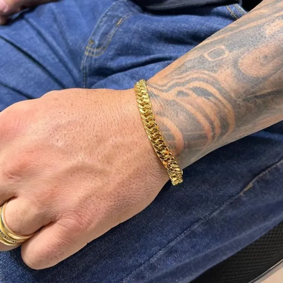 Pulseira banhada a ouro, modelo Grumet Dupla com 21cm de comprimento 9mm de espessura fecho Imã.
