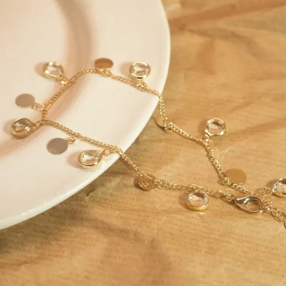 Uma peça versátil e sofisticada que combina brilho e leveza. Com banho dourado e detalhes em cristais transparentes, essa pulseira é ideal para elevar qualquer look – do casual ao elegante.