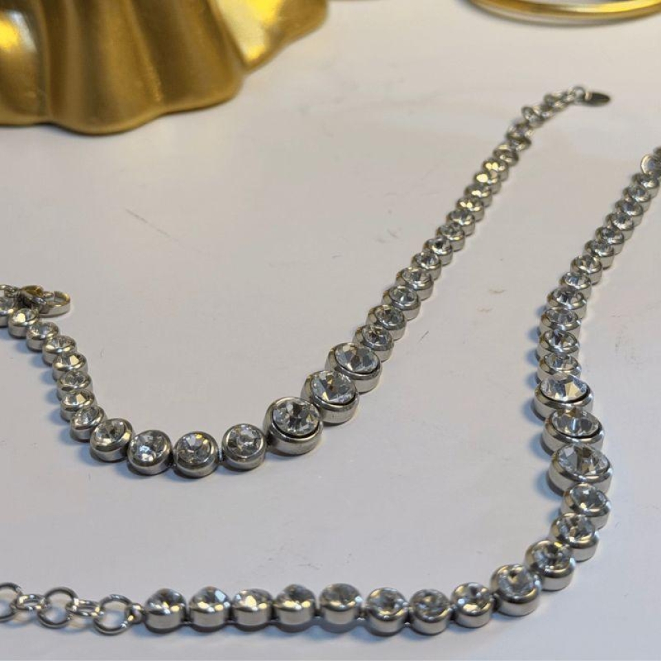 Pulseira confeccionada em aço inox de alta qualidade, disponível na versão em aço natural e na versão com banho de ouro. Possui design clássico e sofisticado, com cristais lapidados cravados individualmente, que garantem brilho intenso e acabamento refinado.