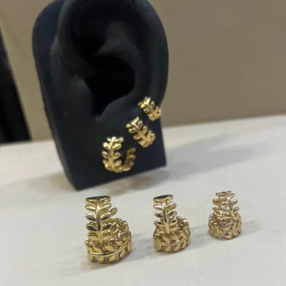Trio Argola Clik Folhas - Banho de Ouro