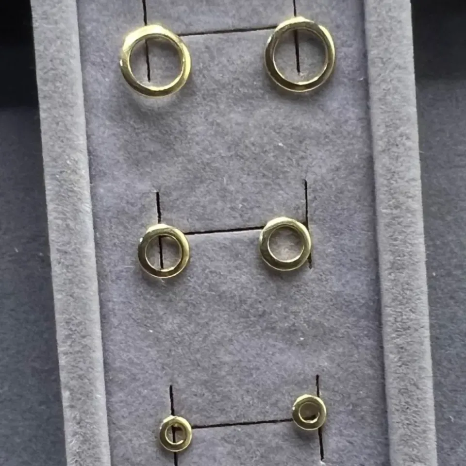 Trio circulo vazado - Banhado a Ouro com tamanhos de 7/6/4mm de diâmetro.